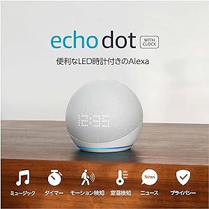Echo Dot with clock (エコードットウィズクロック) 第5世代 - 時計付きスマートスピーカー with Alexa|グレーシャーホワイト